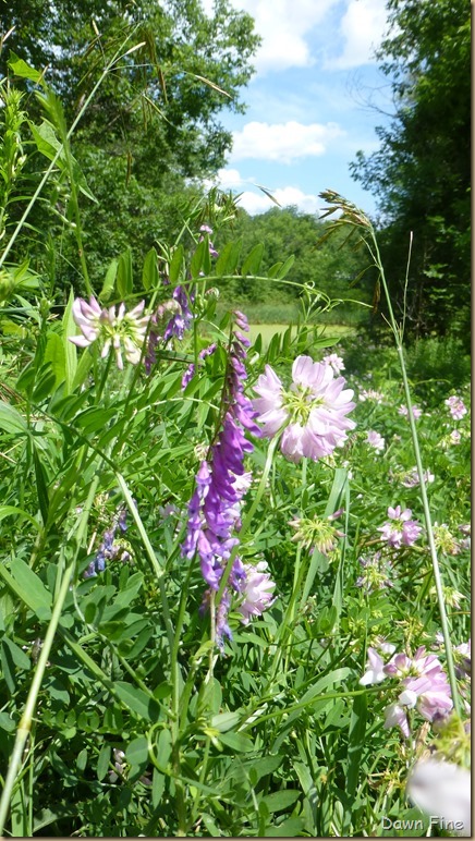 There is a field of vetch in front of the green pond..lots of bees and a few butterflies here…